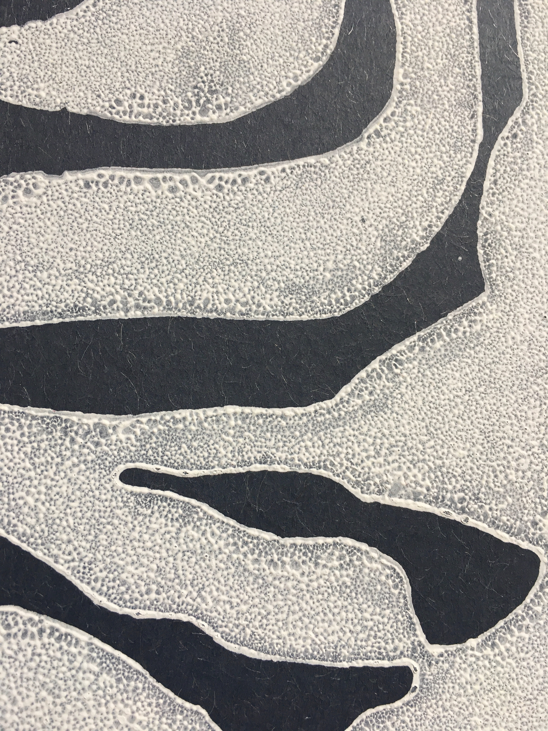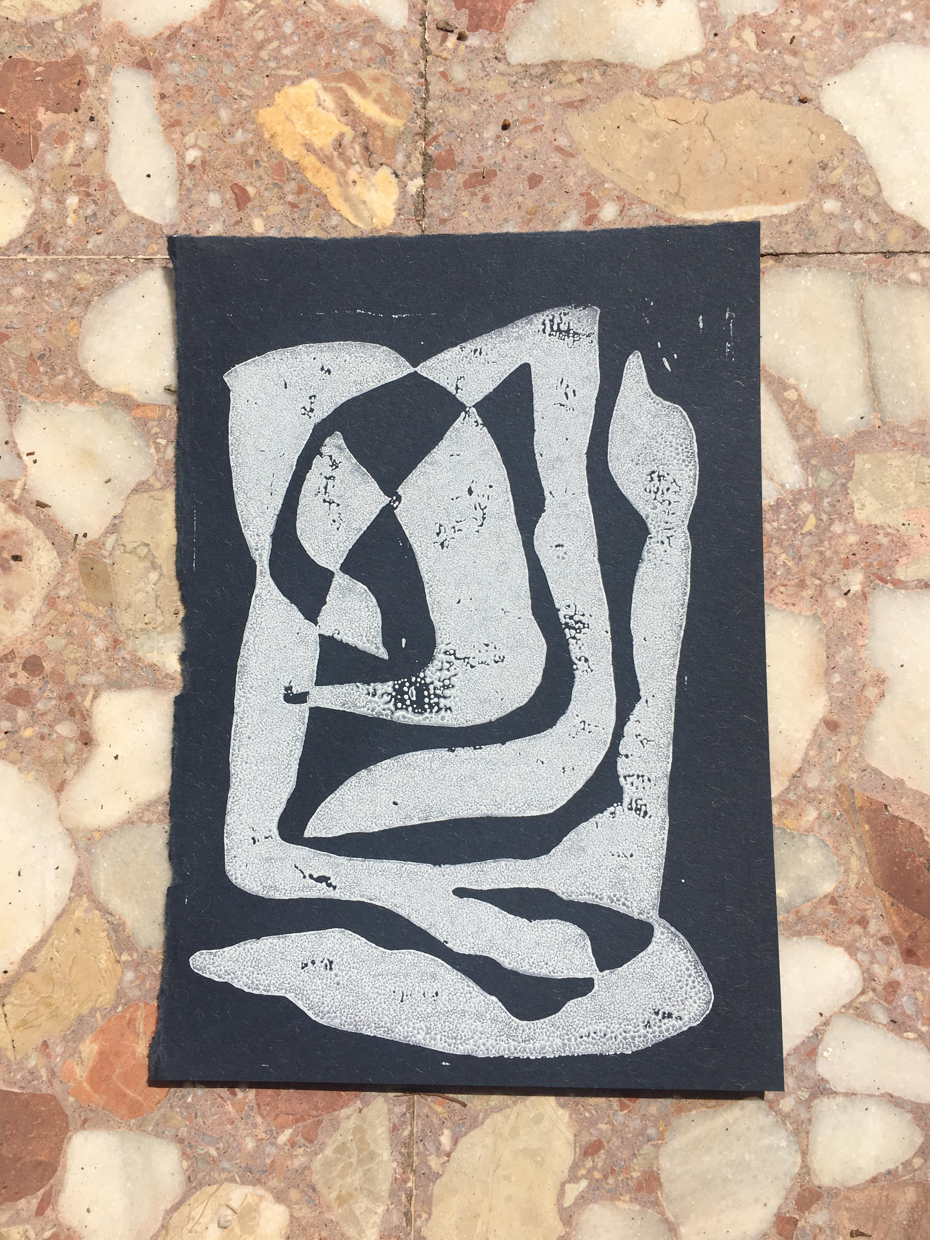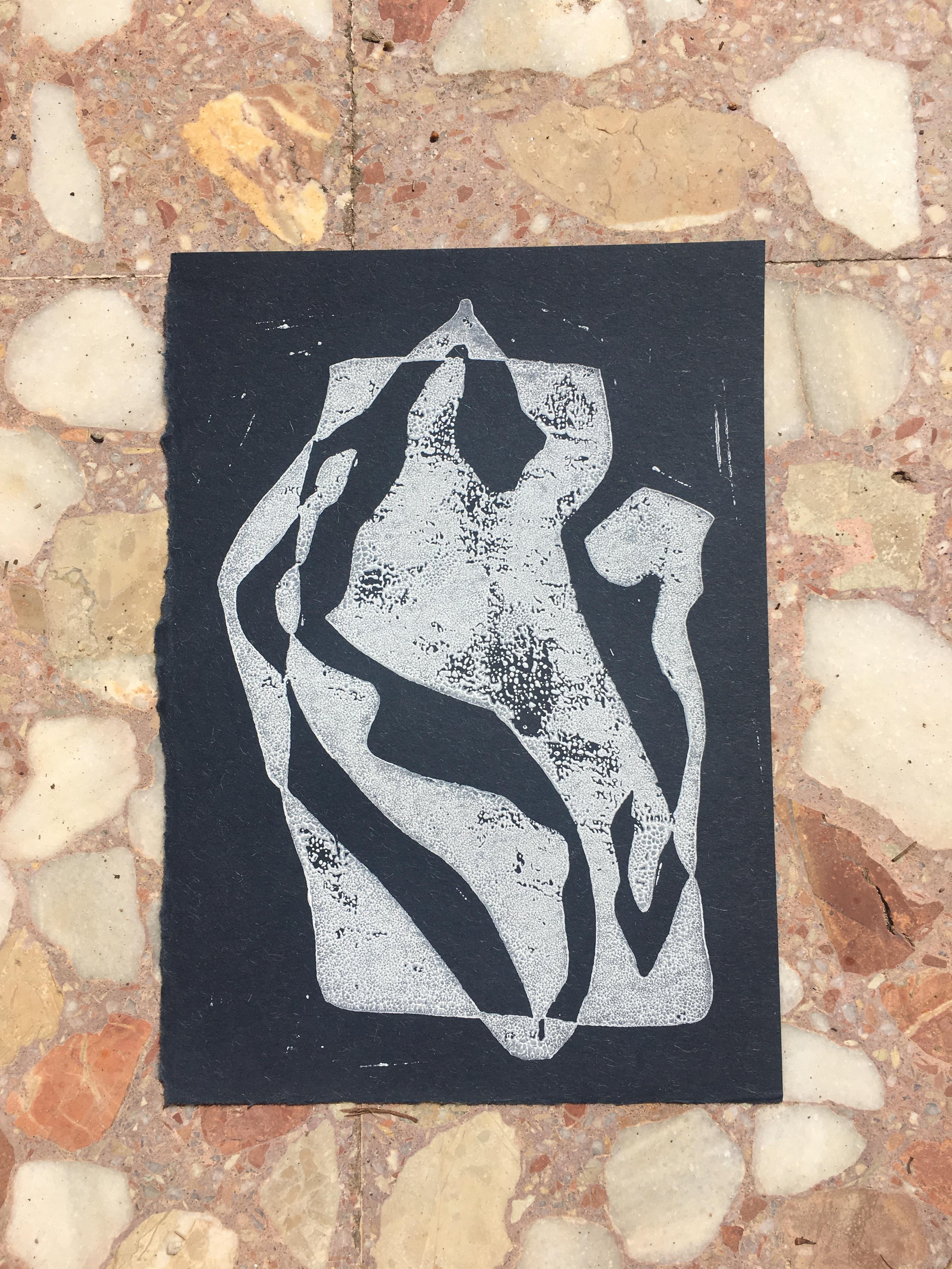 The lino prints were inspired by the surrounding rock and stone formations. Being in that landscape it felt like time was visible there. The rocks, stones and mountains felt like they had scars of time passing: I could see the age of the world, how much time had passed. While at same time feeling the stillness and the seemingly unchangeableness. A stone will outlive us. A stone wears its history, while also its future.